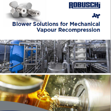 Robuschi levert op maat gemaakte en geoptimaliseerde bloweroplossingen voor mechanische damphercompressiesystemen (MVR). Door recycling van de afvalwarmte van het verdampingsproces, verbetert een goed ontworpen MVR-systeem de efficiëntie en bespaart het geld.